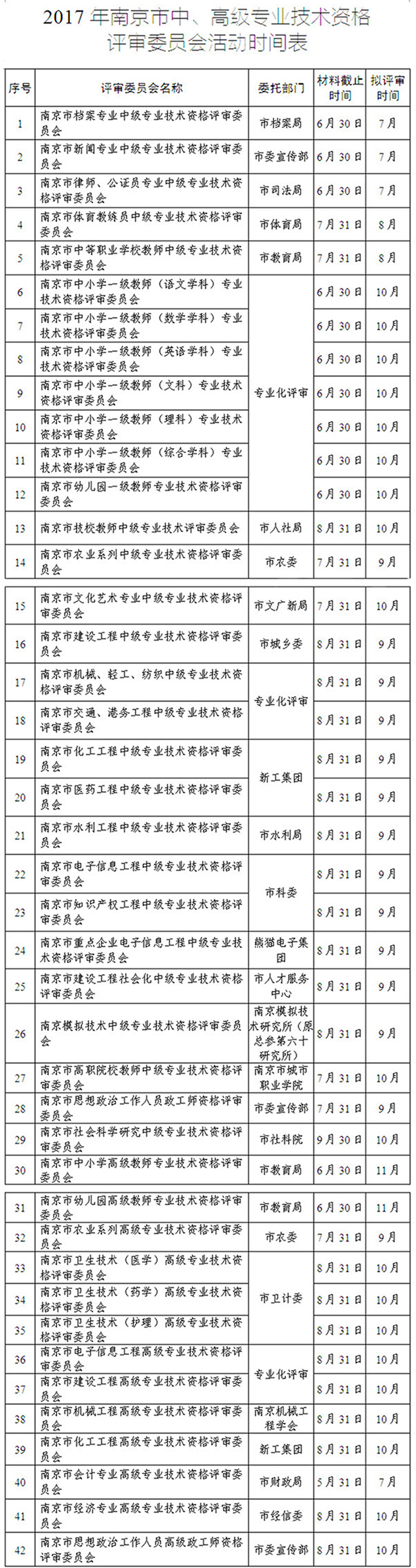 關(guān)于印發(fā)《2017年南京市中、高級(jí)專業(yè)技術(shù)資格評(píng)審委員會(huì)活動(dòng)時(shí)間表》的通知