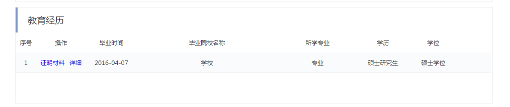 詳細(xì):點(diǎn)擊頁(yè)面上的【詳細(xì)】,可查看詳細(xì)信息,以教育經(jīng)歷為例,如圖2.1.2.7所示。
