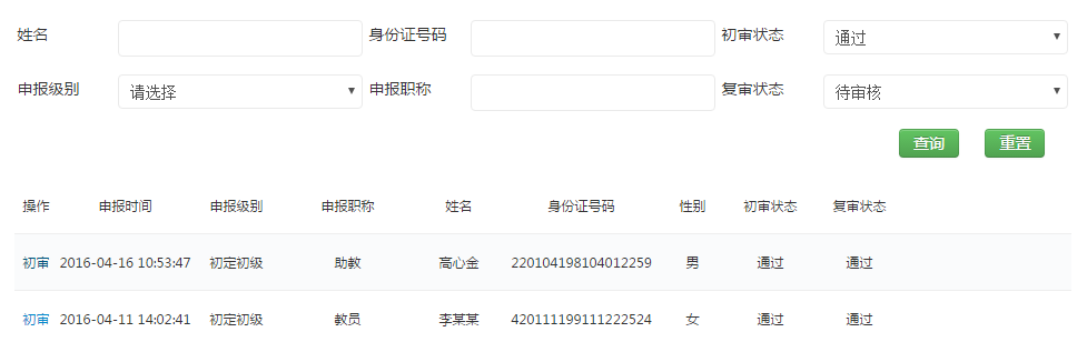 查詢(xún)功能:可根據(jù)查詢(xún)條件(可單項(xiàng)、可多項(xiàng)組合)篩選職稱(chēng)申報(bào)信息。