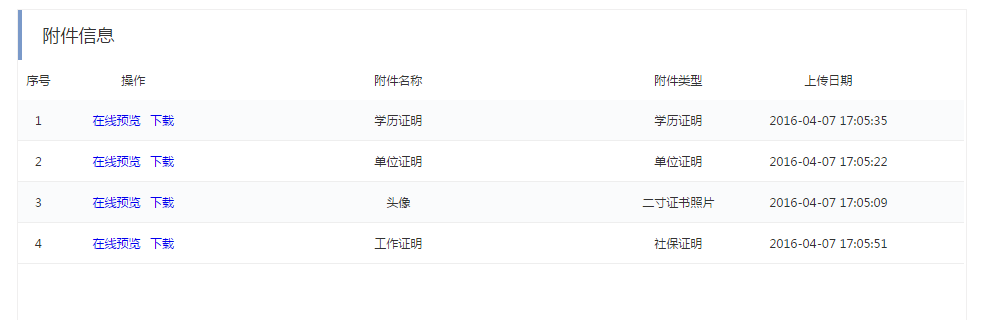 附件信息在線預(yù)覽和下載:【在線預(yù)覽】:可在線預(yù)覽證明;【下載】:點(diǎn)擊后可下載證明,如下圖2.1.2.9 所示。