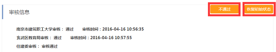 如需重新審核(前提:主管部門(mén)尚未審核),可修改審核狀態(tài)或恢復(fù)初始狀態(tài)。