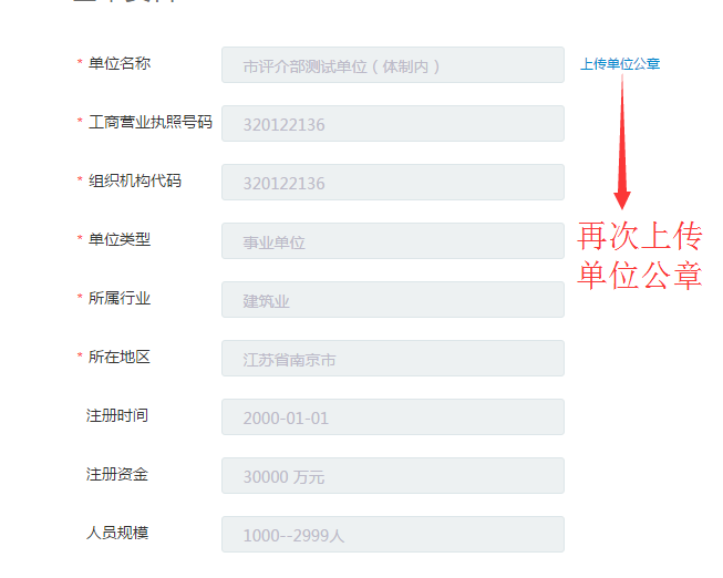 上傳單位公章:點(diǎn)擊【上傳單位公章】按鈕上傳電子公章。